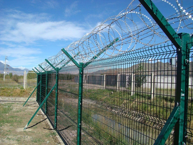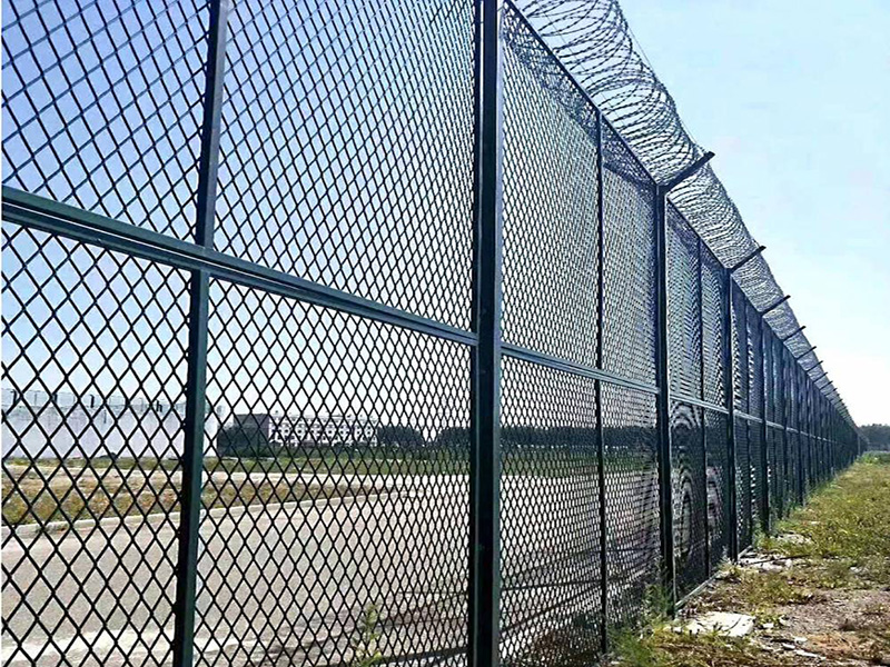 機(jī)場(chǎng)護(hù)欄網(wǎng)是一種采用低碳鋼絲焊接而成的網(wǎng)片 立柱 刺鐵絲(可選) 斜撐(可選)連接而成的護(hù)欄網(wǎng)產(chǎn)品。本產(chǎn)品美觀大方、防腐性好、易保養(yǎng)、防攀爬能力強(qiáng)。主要適用于機(jī)場(chǎng)周圍的隔離防護(hù)、美化及防翻越工程。本產(chǎn)品采用組裝式整體框架結(jié)構(gòu),具有堅(jiān)固耐用、利于施工、安裝方便、快捷的特點(diǎn)。